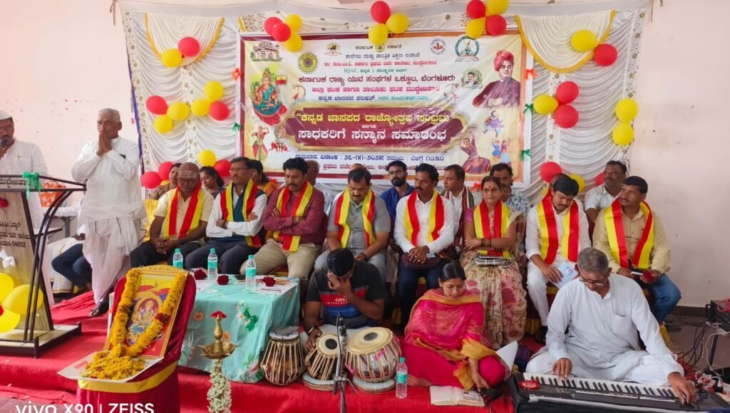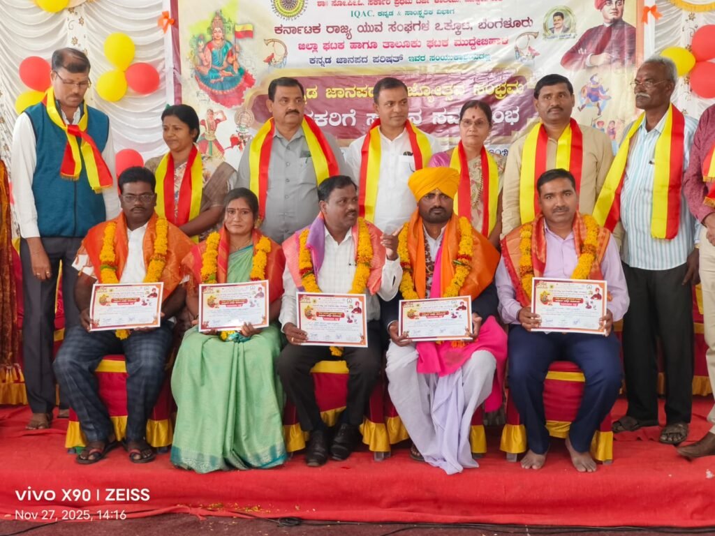 ಡಾ!! ಸೋ,ಪೀ,ಒ,ಸರಕಾರಿ ಪ್ರಥಮ ದರ್ಜಿ ಕಾಲೇಜಿನಲ್ಲಿ ಇಂದು ಕರ್ನಾಟಕ ರಾಜ್ಯ ಯುವ ಸಂಘಗಳ ಜಿಲ್ಲಾ/ ತಾಲೂಕ ಒಕ್ಕೂಟದಿಂದ ಕನ್ನಡ ಜನಪದ ಪರಿಷತ್ತಿನ ಸಹಯೋಗದೊಂದಿಗೆ ” ಕನ್ನಡ ಜಾನಪದ ರಾಜ್ಯೋತ್ಸವ ಸಂಭ್ರಮ ,, ಕಾರ್ಯಕ್ರಮ ಉದ್ಘಾಟನೆ ಮಾಡಿ ಮಾತನಾಡಿದ ತಾಲೂಕ ಪಂಚಾಯತ ಕಾರ್ಯನಿರ್ವಾಹಕ ಅಧಿಕಾರಿ ವೆಂಕಟೇಶ ವಂದಾಲ ಅವರು ಜನಪದ ಸಾಹಿತ್ಯ ಹಾಗೂ ಕಲೆ ಉಳಿಸಿಕೊಳ್ಳುವಲ್ಲಿ ನಾವು ಇಂತಹ ವೇದಿಕೆಗಳನ್ನು ಕಲಾವಿದರು ಬಳಸಿಕೊಳ್ಳಬೇಕು, ಪುಂಡಲೀಕ ಮುರಾಳ ಅವರು ಜಿಲ್ಲೆಯಲ್ಲಿ ಸಾವಿರಾಯ ಕಲಾವಿದರಿಗೆ ವೇದಿಕೆ ಕಲ್ಪಿಸಿ ಕಲೆಯನ್ನು ಉಳಿಸಿ,ಬೆಳೆಸಲು ಶ್ರಮಿಸುತ್ತಿದ್ದಾರೆ.