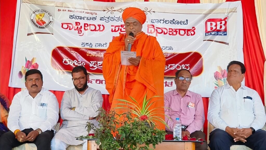 ಕಾರ್ಯಕ್ರಮದ ದಿವ್ಯ ಸಾನಿಧ್ಯ ವಹಿಸಿ ಮಾತನಾಡಿದ ಪೂಜ್ಯ ಶ್ರೀ ಶ,ಪ್ರ ಶಿವಪೂಜಾ ಶಿವು ವಾರ್ ಮಹಾಸ್ವಾಮಿಗಳು ಬದಾಮಿ ಇವರು ಮಾತನಾಡಿ ಬಾಗಲಕೋಟೆ ಕರ್ನಾಟಕ ಪತ್ರಕರ್ತರ ಸಂಘ ಬಹಳ ದೊಡ್ಡ ಕಾರ್ಯವನ್ನು ಮಾಡಿದೆ ,ರಾಜ್ಯ ಮಟ್ಟದ ಗೌರವ ಪುರಸ್ಕಾರವನ್ನು ಸಾಧಕರಿಗೆ ಮಾಡಿದ್ದು ಬಹಳ ಖುಷಿಯಾಗಿದೆ.